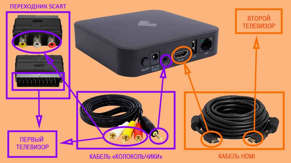 - Соедините приставку с телевизором через HDMI или RCA-кабель