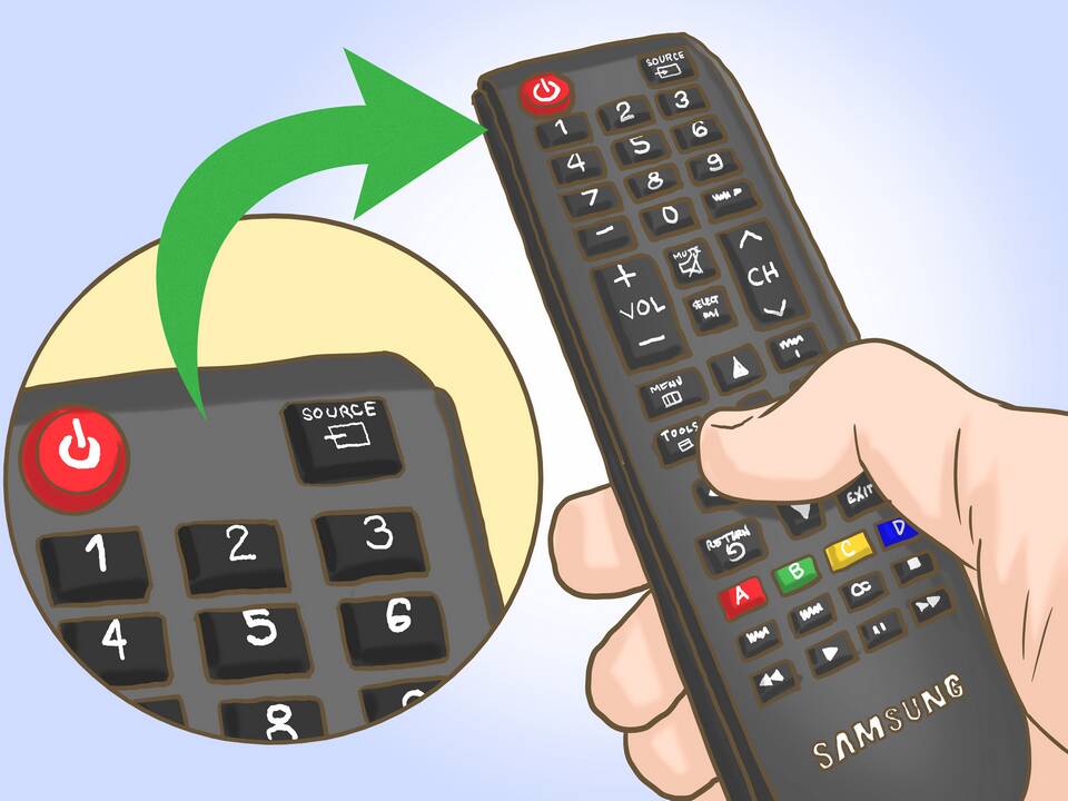 - Включите телевизор Samsung кнопкой на корпусе