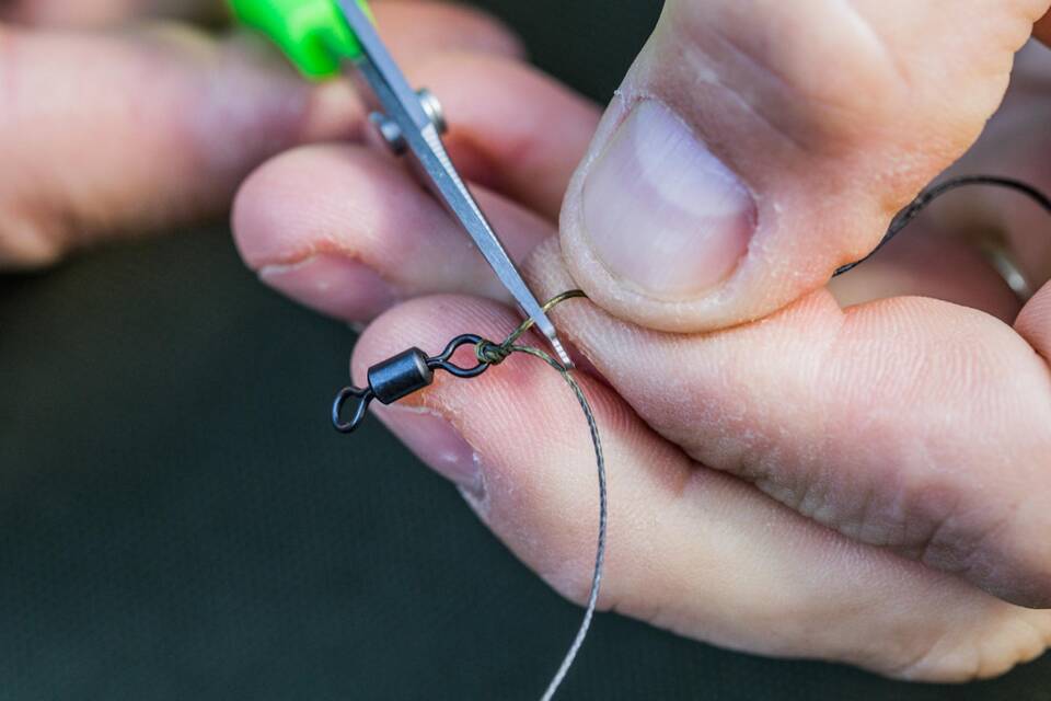 - Монофильная леска - предварительно смачивайте перед затягиванием узла
