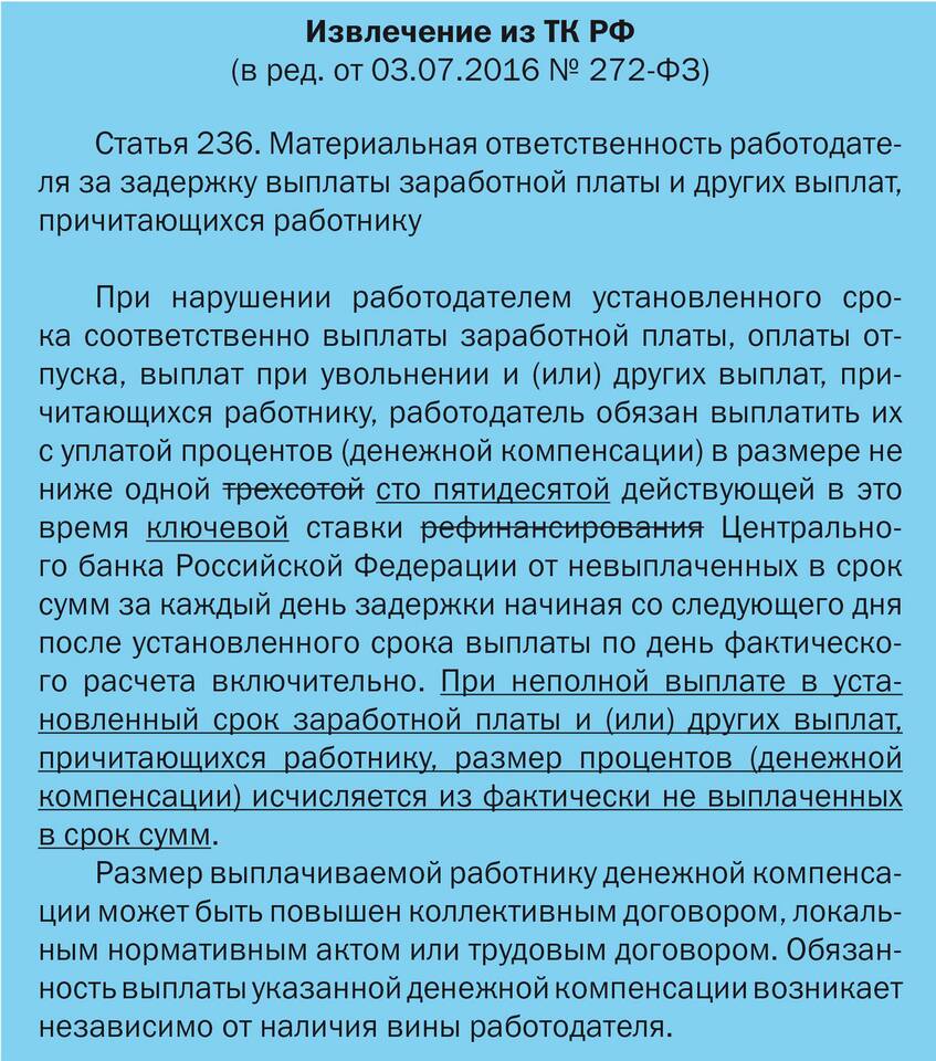 Согласно статье 236 ТК РФ, работодатель обязан выплатить: